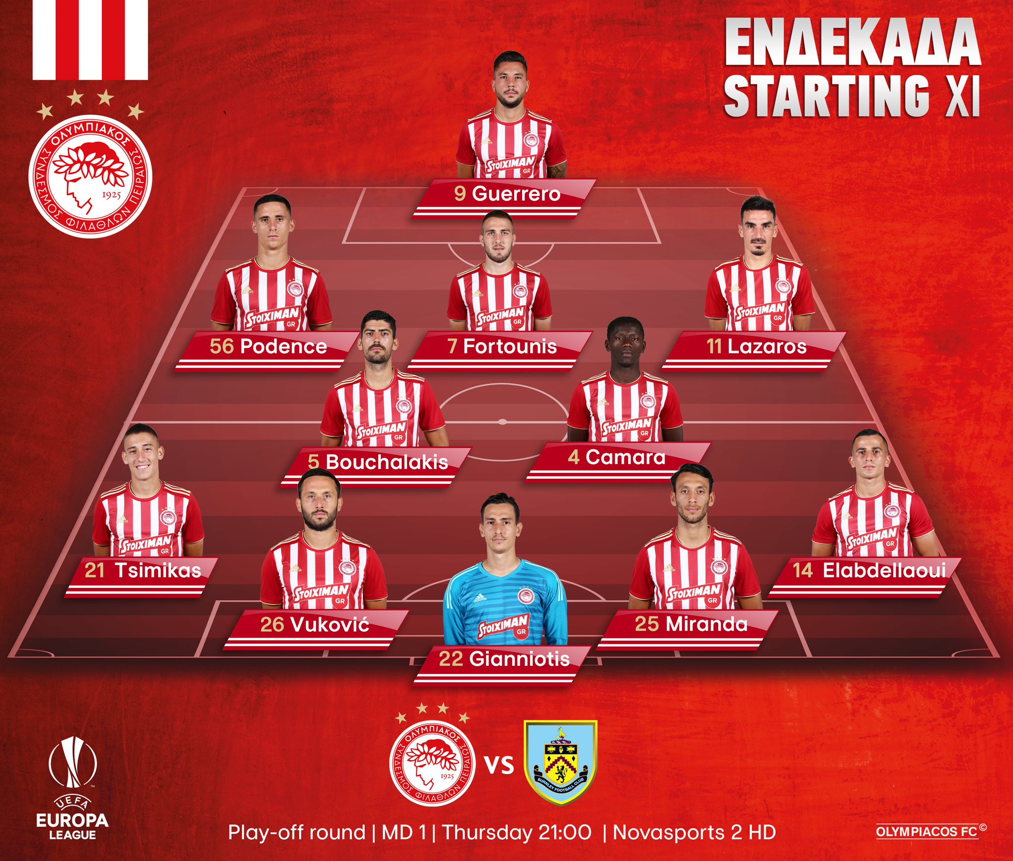 Olympiacos Fc - Olympiacos Fc On Twitter: "Η Ενδεκάδα Της Ομάδας Μας Για Το Ματς Κόντρα Στη Μπέρνλι. / The Line ...